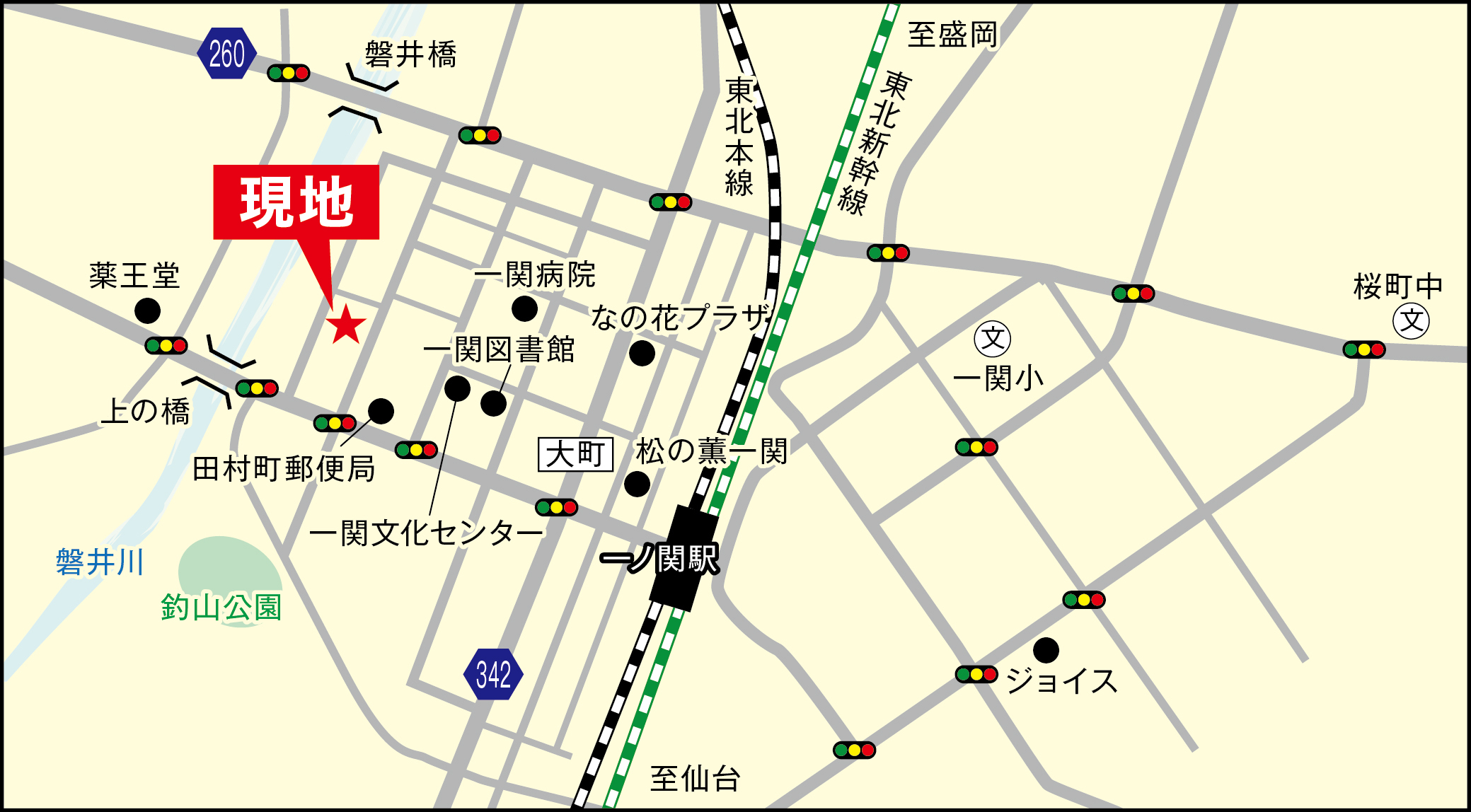 JR一ノ関駅まで徒歩9分、学校や病院にも近い好立地
