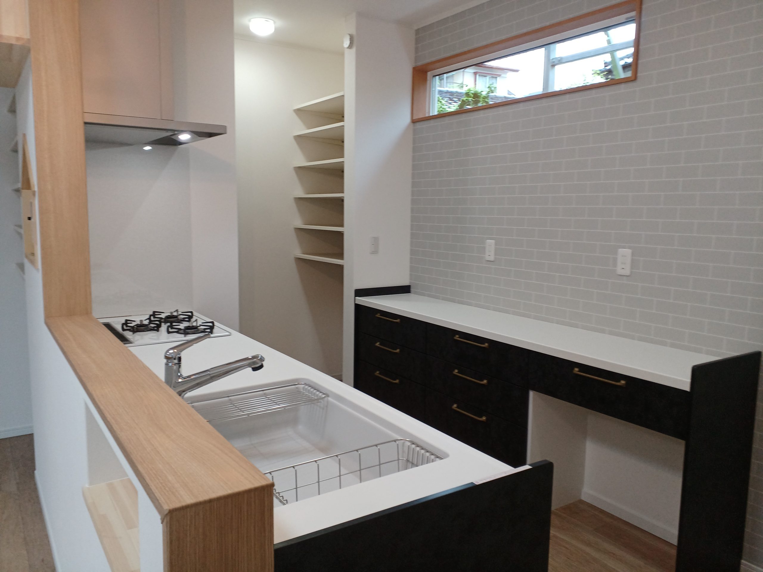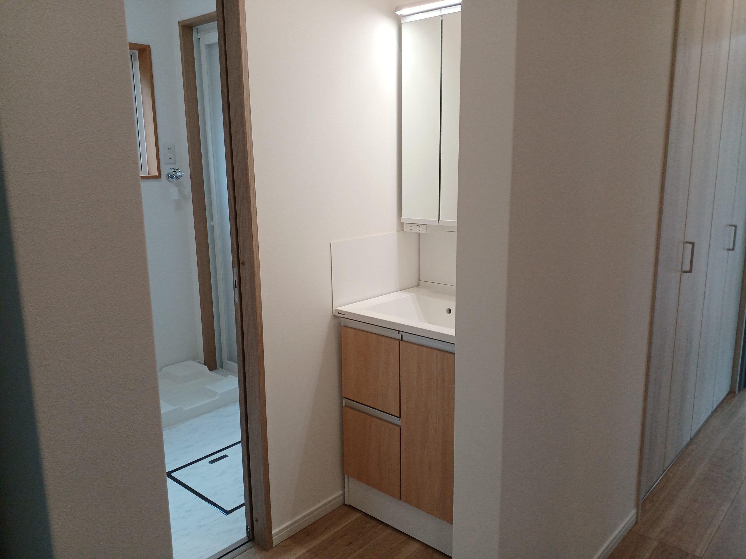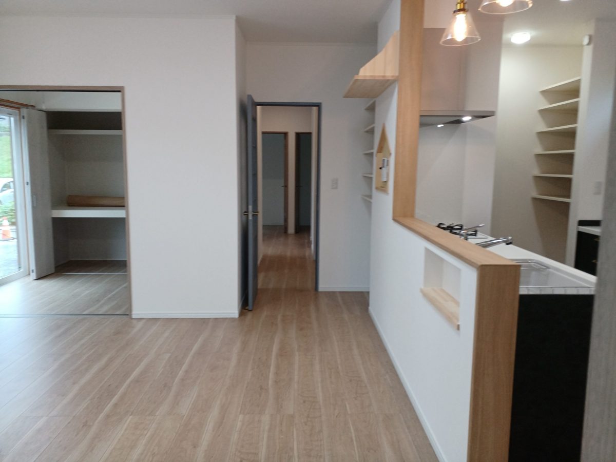 子育て世代の夫婦と考えた、お子様が成長してもほどよい距離感の間取りです。 LDKに収納力抜群のパントリーやニッチを設けたほかに 雨の日も安心のランドリールームは衣替えにも対応できる収納付。 洗面化粧台を独立させ、脱衣室を広くするなどアイデア満載です。 ❝お気に入り❞の色合いに囲まれた心地良い家で新しい生活が始まります。