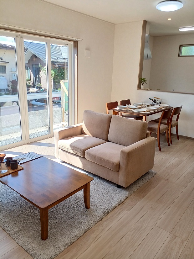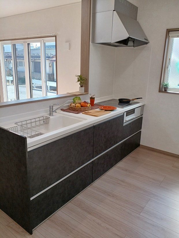 地域一関市 施工年月令和7年10月 延床面積90.66㎡ 敷地面積175.48㎡ 工事内容スーパー、市役所、文教施設が徒歩圏内の好立地物件。 明るいLDKを通るリビング階段は家族の様子を伺うことができます。 各居室は収納もたっぷりで整頓もラクチン。 発電した電気を定額で使い放題の❝あおぞらチャージサービス❞採用。 電気代の節約にも繋がります。 注文住宅クオリテイーの建売住宅が完成しました。