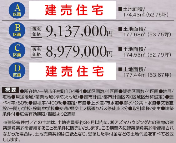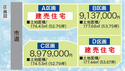- 宅地面積174.53㎡(52.79坪)~177.68㎡(53.75坪)