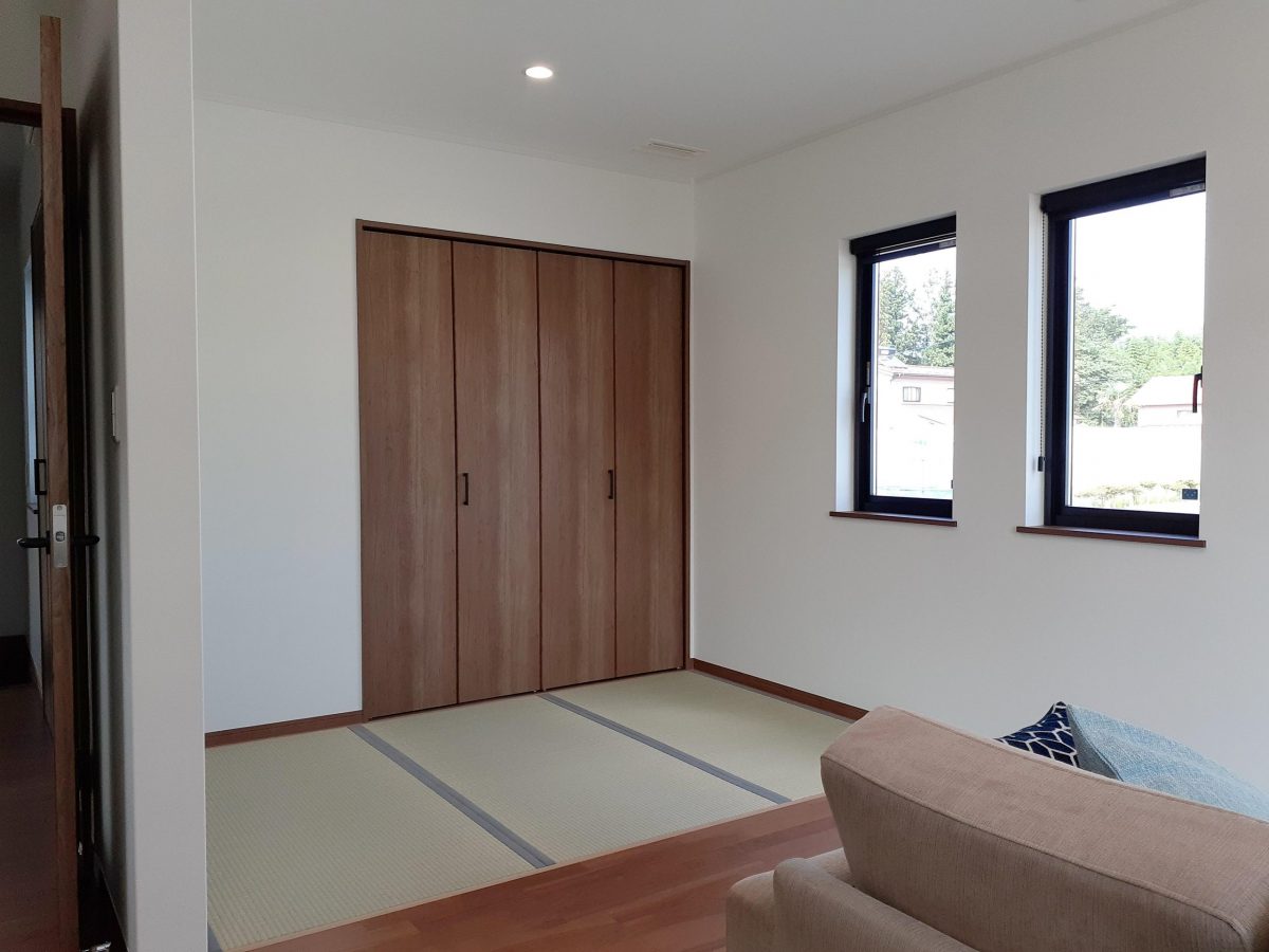 地域一関市 施工年月令和4年8月 延床面積96.05㎡(29.06坪) 敷地面積217.28㎡(約65.72坪) 工事内容注文住宅で多くご採用いただいている全館換気システムを採用しています。 その人気の理由は玄関から入ってすぐ実感できる快適さ。 各フロアに1台ずつ設置しているエアコンで、廊下や脱衣室も家中まるごと空調管理。温度ムラの少ない環境でヒートショックの予防にも最適です。 さらに天井埋め込み型で室内はスッキリ。熱エネルギーをリサイクルすることで省エネにも貢献できます。